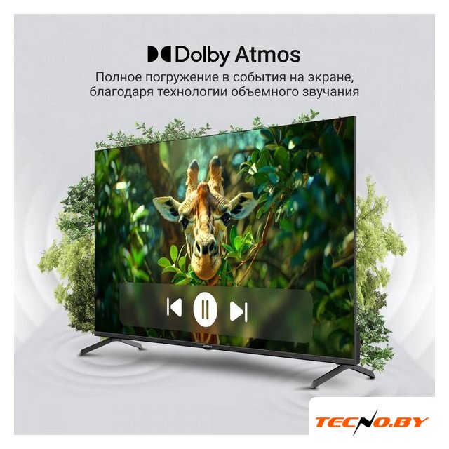 43" 3840x2160 (4K UHD), матрица VA, частота матрицы 60 Гц, Smart TV (Google TV), HDR10, HDR10+, Dolby Vision, HLG, DTS:HD, Dolby Atmos, DTS Virtual: X, AirPlay, Wi-Fi, смарт пульт