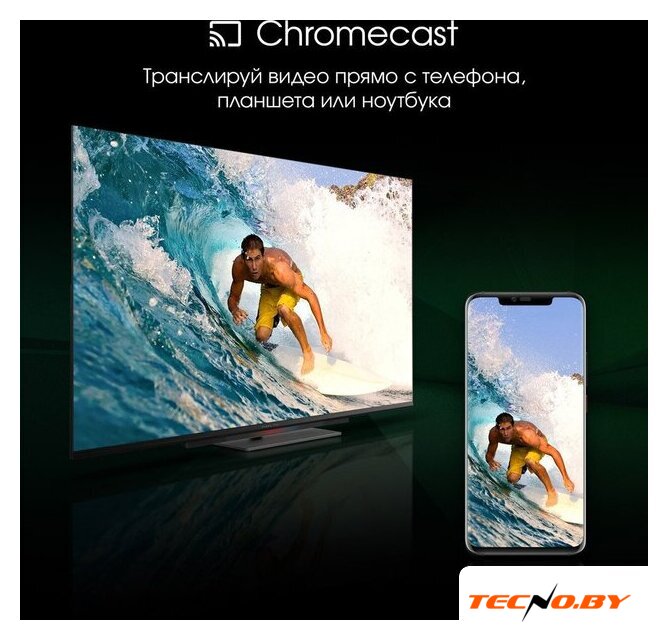 55" 3840x2160 (4K UHD), частота матрицы 60 Гц, Smart TV (Android TV), HLG, Wi-Fi, смарт пульт