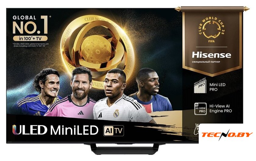 100" 3840x2160 (4K UHD), матрица VA, частота матрицы 144 Гц, Smart TV (Vidaa), HDR10, HDR10+, Dolby Vision, Dolby Vision IQ, HLG, DTS:X, Dolby Atmos, AirPlay, Wi-Fi, смарт пульт