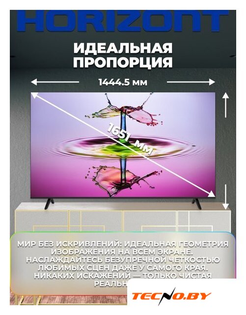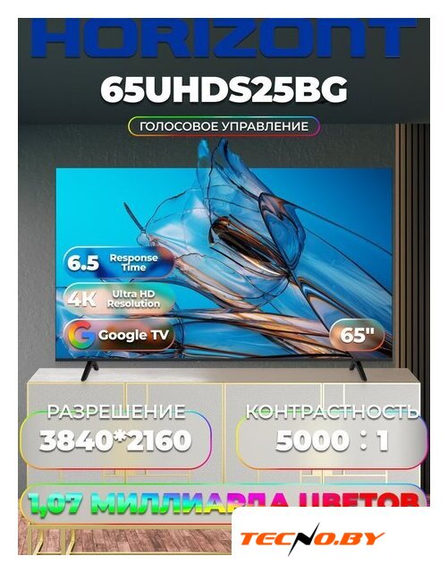 65" 3840x2160 (4K UHD), матрица VA, частота матрицы 60 Гц, Smart TV (Android), HDR10, HDR10+, Dolby Vision, Dolby Atmos, Wi-Fi, смарт пульт