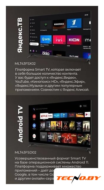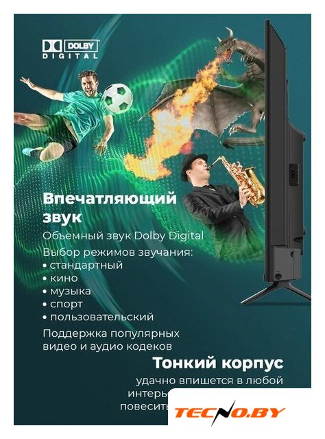 40" 1920x1080 (Full HD), матрица VA, частота матрицы 60 Гц, Smart TV (Яндекс.ТВ), Wi-Fi, смарт пульт