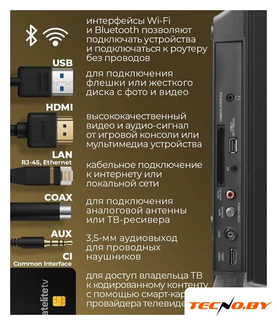43" 1920x1080 (Full HD), матрица IPS, частота матрицы 60 Гц, Smart TV (Салют ТВ), Wi-Fi, смарт пульт