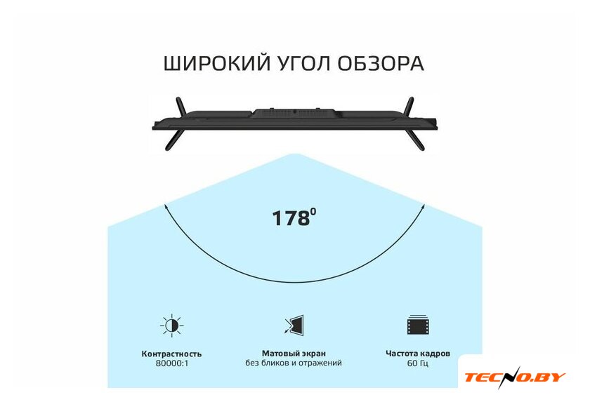 23.6" 1366x768 (HD), матрица VA, частота матрицы 50 Гц, Smart TV (Android), Wi-Fi