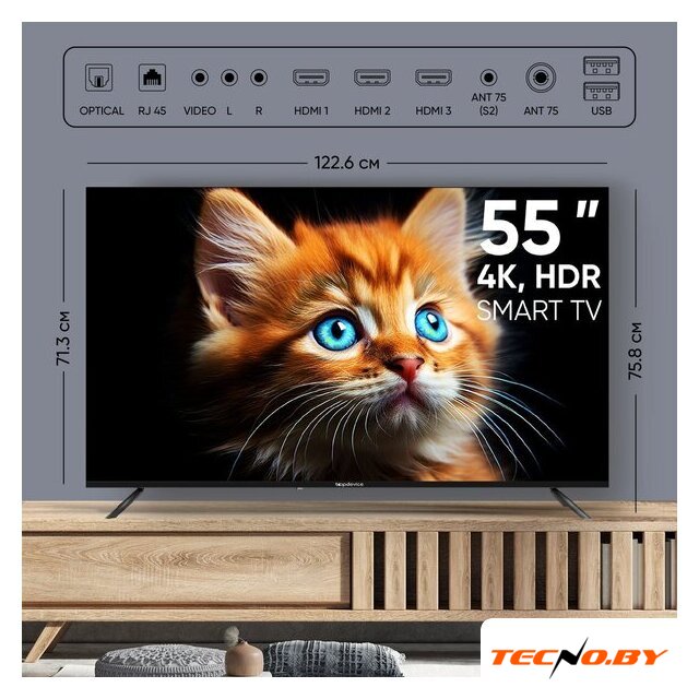 55" 3840x2160 (4K UHD), частота матрицы 60 Гц, Smart TV (Яндекс.ТВ), Wi-Fi