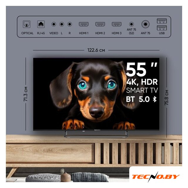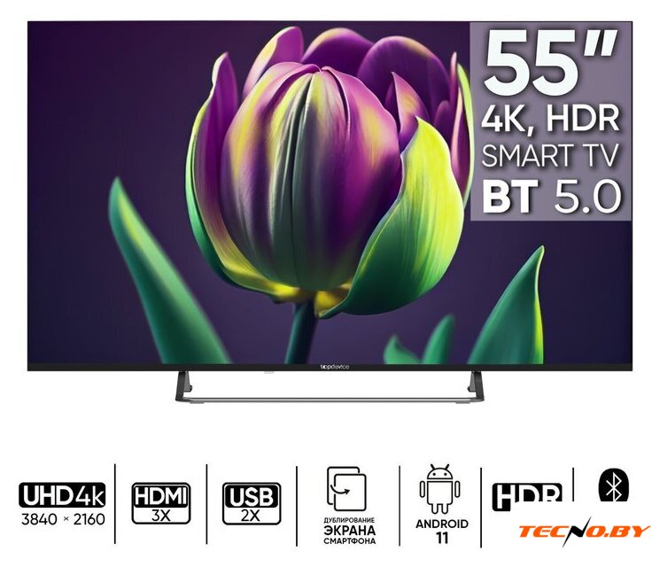 50" 3840x2160 (4K UHD), частота матрицы 60 Гц, Smart TV (Android TV), HDR10, HLG, DTS:HD, DTS:X, Wi-Fi, смарт пульт
