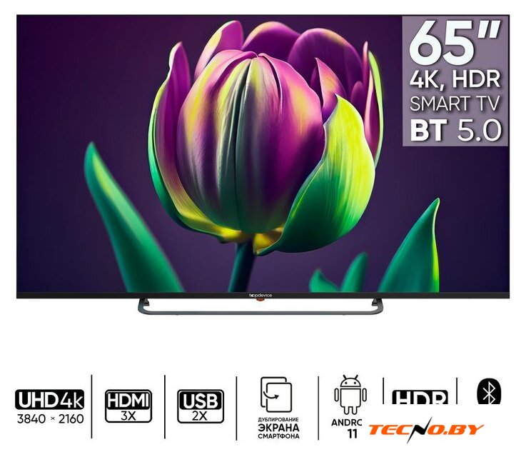 65" 3840x2160 (4K UHD), матрица VA, частота матрицы 60 Гц, Smart TV (Яндекс.ТВ), HDR10, Wi-Fi, смарт пульт