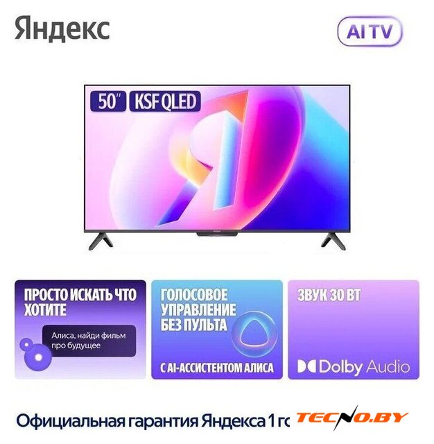 50" 3840x2160 (4K UHD), матрица VA, частота матрицы 60 Гц, Smart TV (Яндекс.ТВ), HDR10, Wi-Fi, смарт пульт