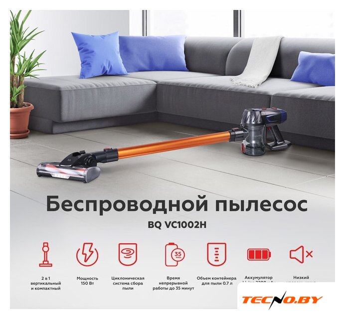 вертикальный 2-в-1, аккумулятор, потребление: 150 Вт, регулировка мощности, турбощетка