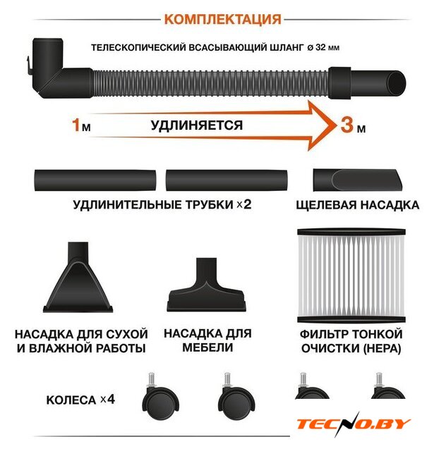 | Дополнительные насадки | насадка для влажной уборки, гибкий шланг |