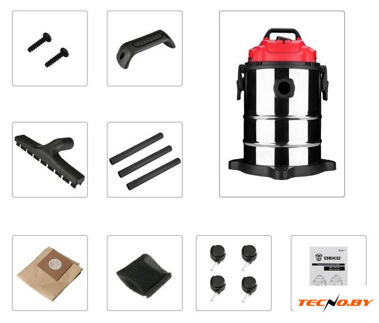 хозяйственный, пылесборник: мешок+контейнер, мощность всасывания: 260 Вт, потребление: 1300 Вт, труба: пластик, без регулировки мощности, шум 85 дБ