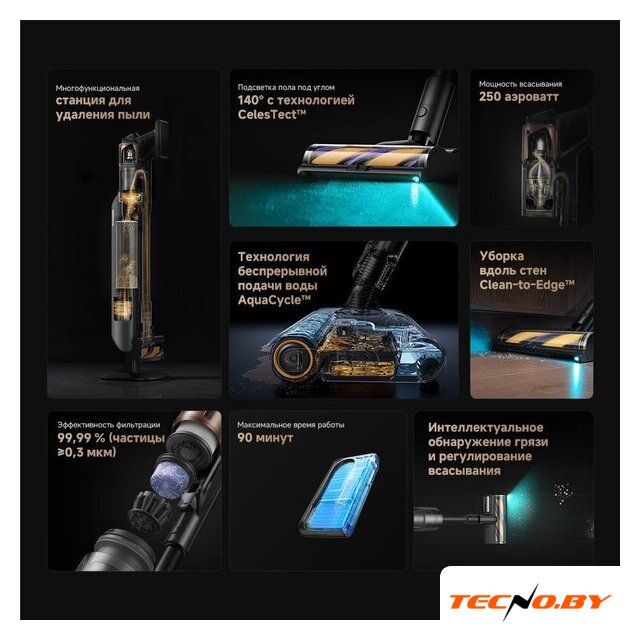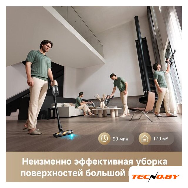 вертикальный с влажной уборкой, аккумулятор, регулировка мощности, турбощетка, шум 84 дБ