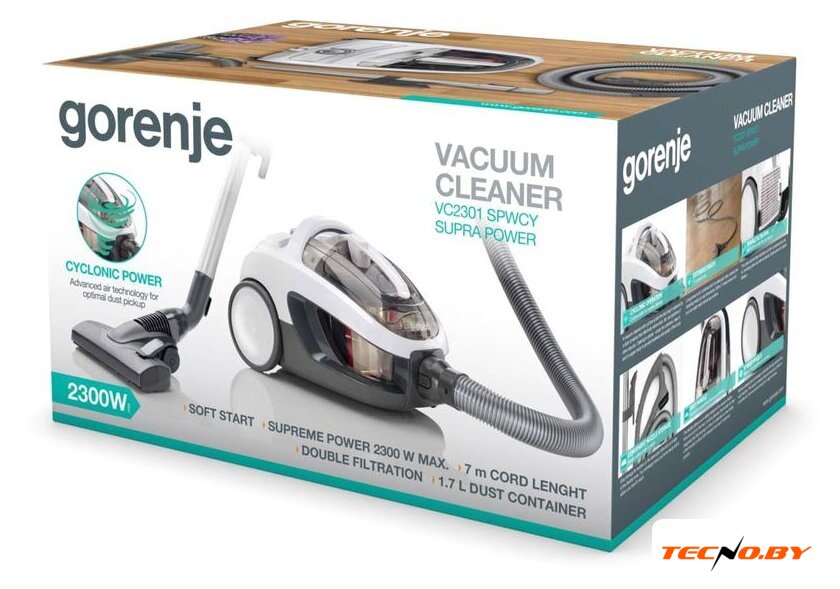 классический с контейнером, пылесборник: контейнер, мощность всасывания: 350 Вт, потребление: 2300 Вт, регулировка мощности на корпусе, шум 83 дБ, турбощетка