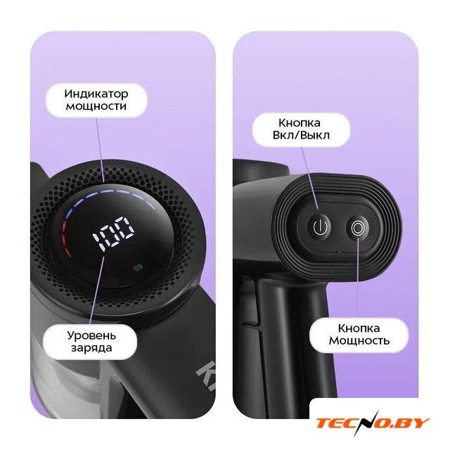 вертикальный/портативный, аккумулятор, регулировка мощности, шум 65 дБ