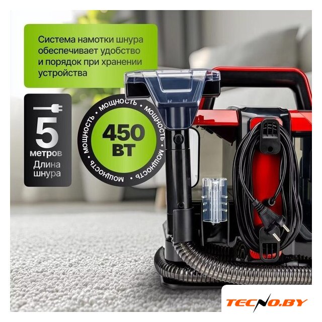 моющий, сеть, потребление: 450 Вт, без регулировки мощности, шум 80 дБ