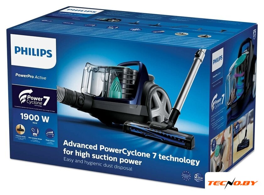 с контейнером, пылесборник: контейнер, мощность всасывания: 410 Вт, потребление: 1900 Вт, регулировка мощности на корпусе, шум 82 дБ