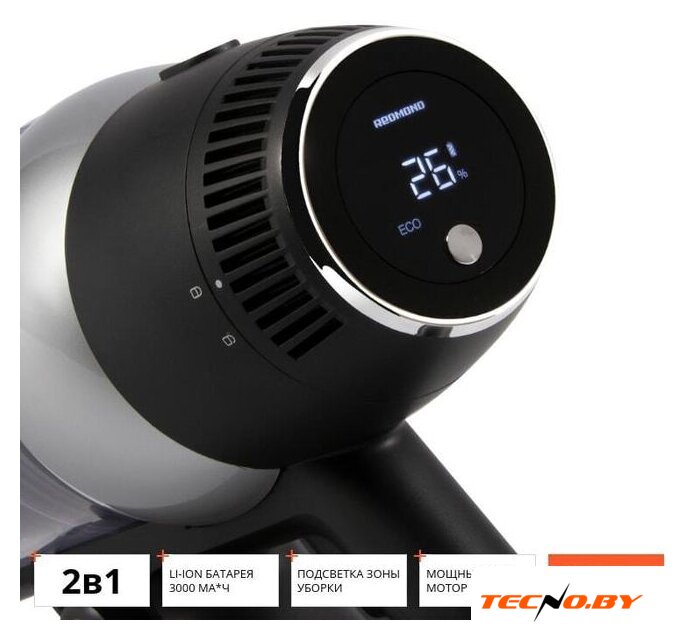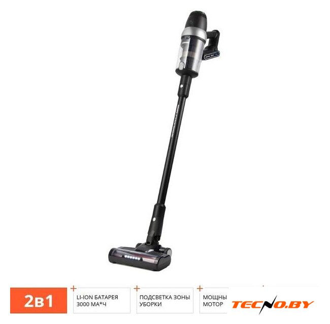 вертикальный 2-в-1, пылесборник: контейнер, регулировка мощности на ручке, шум 80 дБ, турбощетка