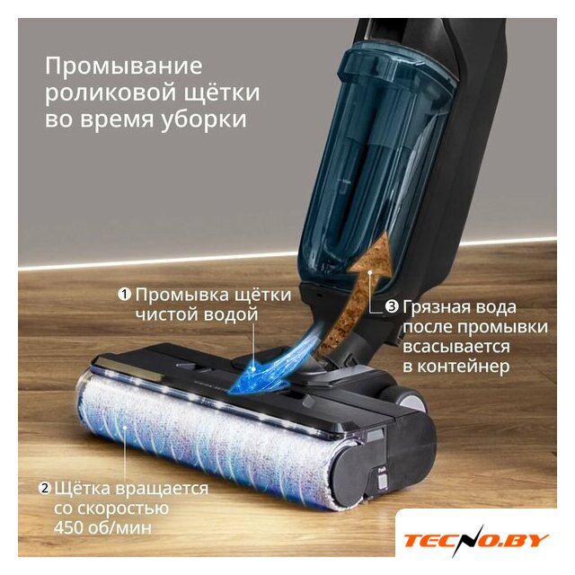 | Функциональные особенности | всасывание жидкостей, подсветка рабочей зоны, дисплей, автоматическая мойка швабры, автоматическая сушка швабры |
