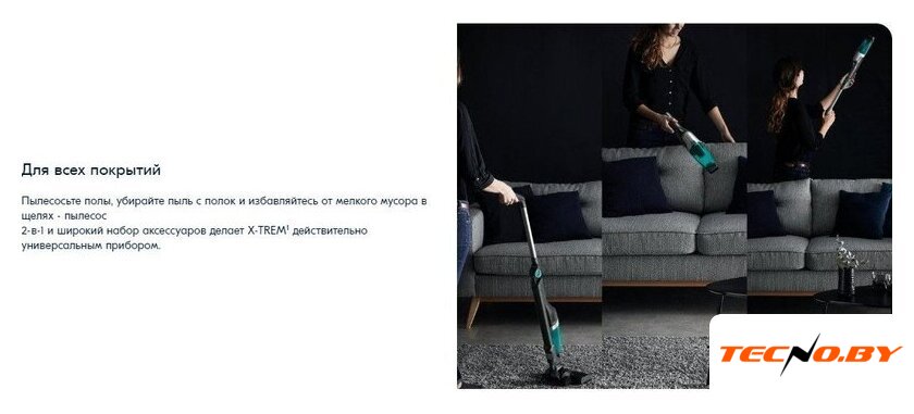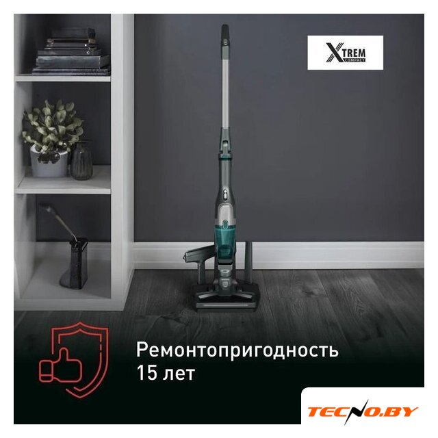 вертикальный 2-в-1, аккумулятор, мощность всасывания: 150 Вт, потребление: 450 Вт, регулировка мощности, турбощетка, док-станция с зарядкой, шум 72 дБ