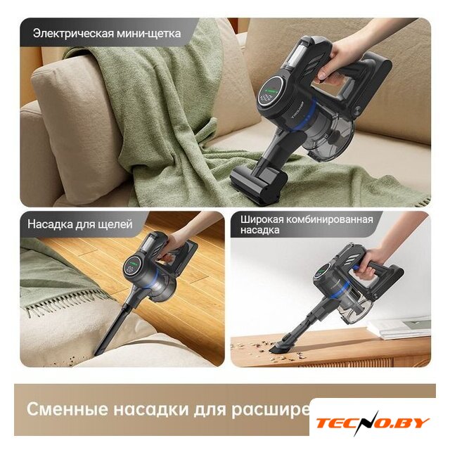 вертикальный 2-в-1, аккумулятор, потребление: 120 Вт, регулировка мощности, турбощетка, док-станция без зарядки, шум 76 дБ