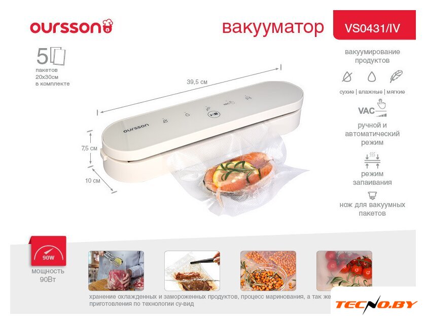 | Комплектация | В комплект входят вакуумные пакеты 5 шт., а также нож для пакетов и рулонов. |