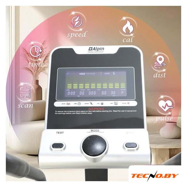 | Показания на дисплее | Отображается профиль тренировкиПоказывается времяУказывается дистанцияФиксируется скоростьОтображаются сожжённые калорииПоказываются обороты в минутуУровни нагрузкиПульс пользователяФитнес-тест Recovery |