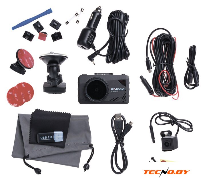 | Комплектация | - Адаптер питания с доп. USB;- Крепление на присоске;- Крепление на 3М скотче;- USB-кабель;- Предохранители к АЗУ (2шт);- Поляризационный фильтр;- Мешочек для хранения;- Клипсы для провода зарядного устройства;- Лопатка для провода зарядного устройства;- Камера заднего вида;- Кабель для камеры заднего вида 5.5м;- Кабель для камеры заднего вида 0.5м. |