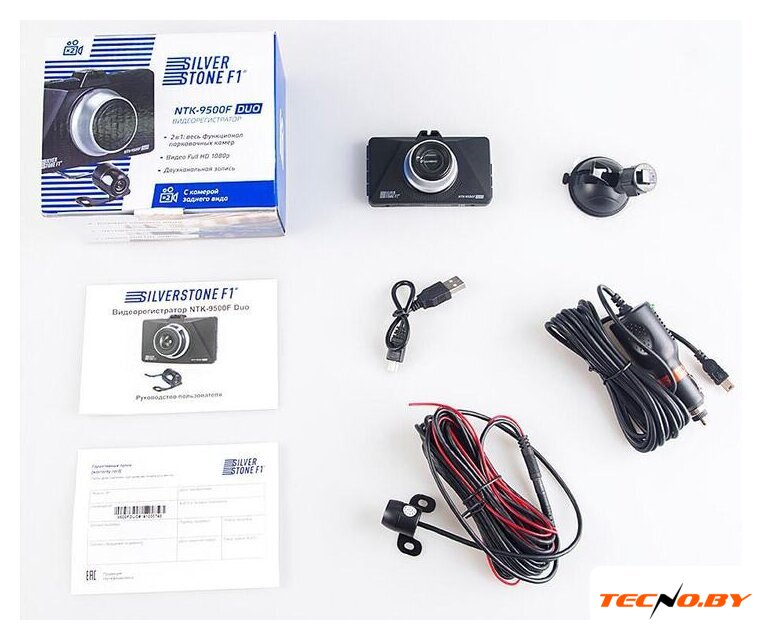 | Комплектация | - Видеорегистратор;- Камера заднего вида и провода для подключения;- Автомобильное зарядное устройство;- Кронштейн с присоской;- USB кабель;- Руководство пользователя. |