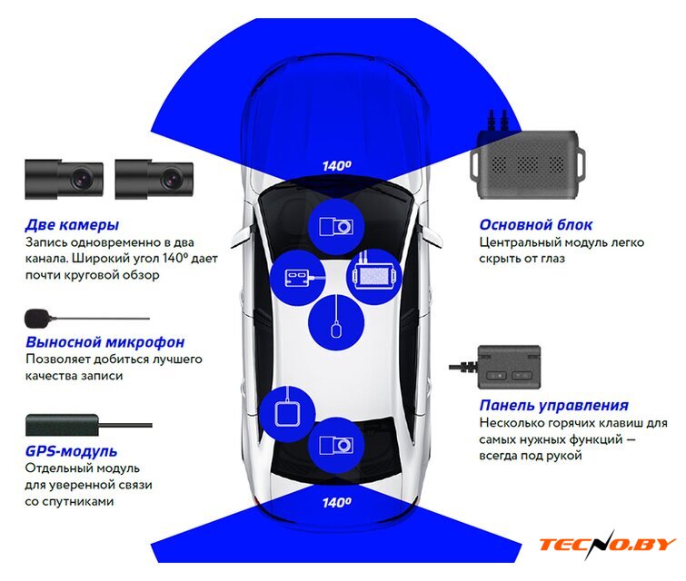 | Комплектация | - Главный блок видеорегистратора- Панель управления с кабелем питания- Внешний GPS-модуль- Микрофон- Основная камера и камера заднего вида- USB-картридер- Инструкция- Гарантийный талон |
