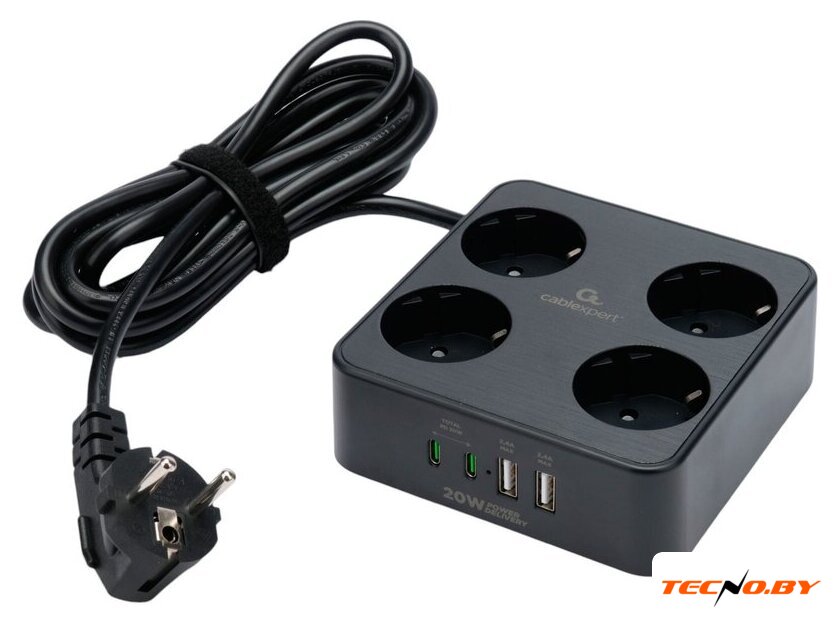 сетевой фильтр, кабель 2 м, 4 розетки Schuko (евро с заземлением) / 2500 Вт/USB