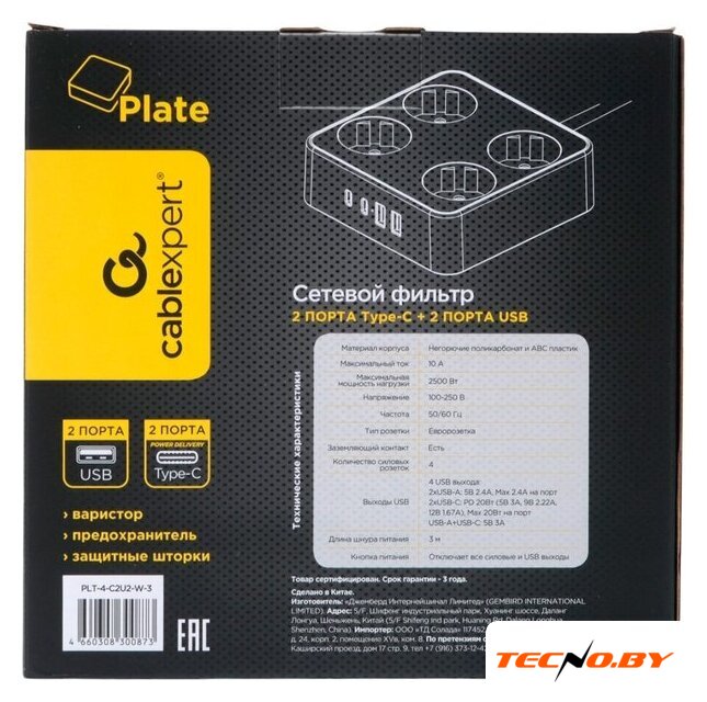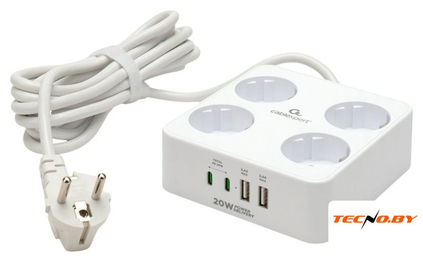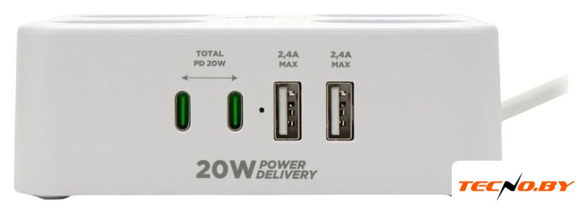 сетевой фильтр, кабель 2 м, 4 розетки Schuko (евро с заземлением) / 3500 Вт/USB