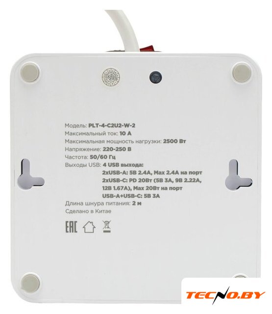 сетевой фильтр, кабель 2 м, 4 розетки Schuko (евро с заземлением) / 2500 Вт/USB