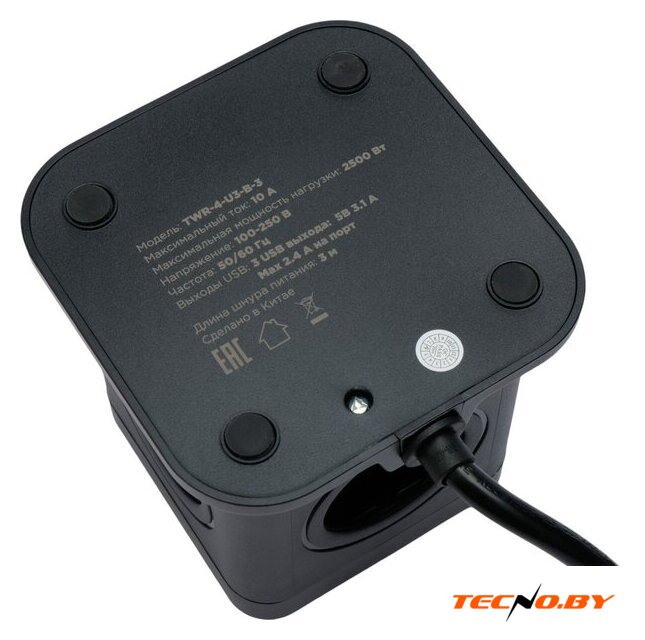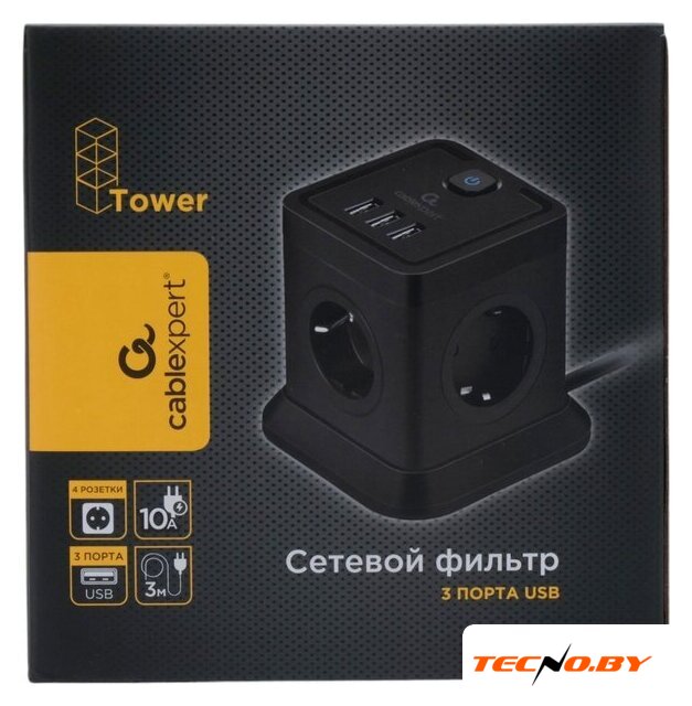 сетевой фильтр, кабель 3 м, 4 розетки Schuko (евро с заземлением) / 2500 Вт/USB