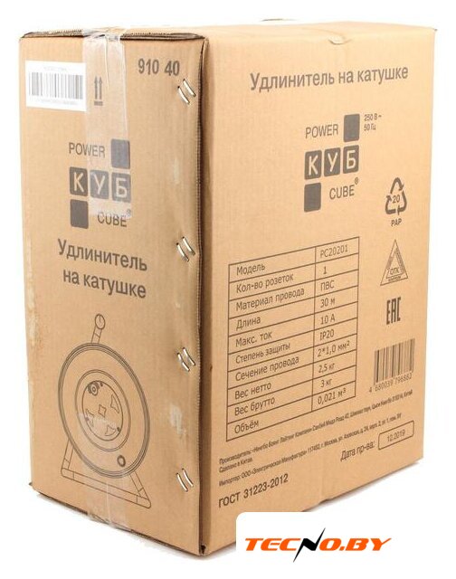 удлинитель, кабель 40 м, 4 розетки / 2200 Вт