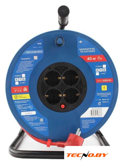 удлинитель на катушке, кабель 30 м, 4 розетки Schuko (евро с заземлением) / 3500 Вт