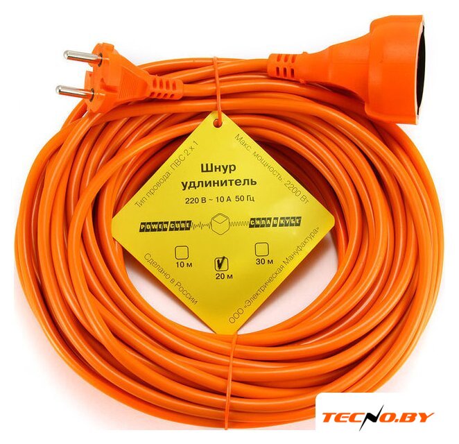 удлинитель, 20 м, 1 розетка евро без заземления / 2200 Вт