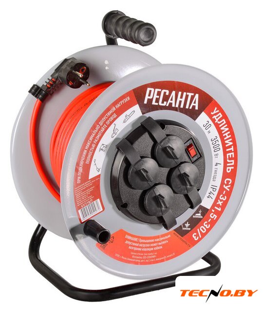 удлинитель, кабель 50 м, 4 розетки / 2200 Вт
