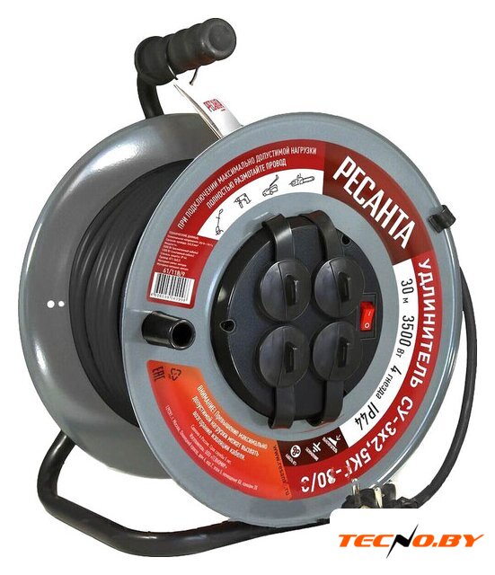 удлинитель на катушке, кабель 50 м, 4 розетки Schuko (евро с заземлением) / 3500 Вт