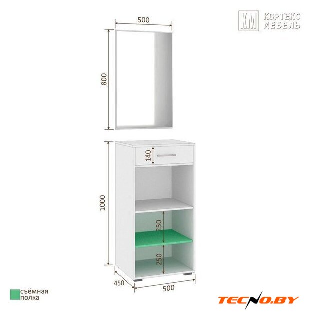 напольная, для прихожей, 4 полки, зеркало, каркас: ЛДСП, 80x35x205 см