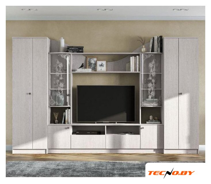 напольная, для жилой комнаты/для гостиной, 3 полки, распашные дверцы, каркас: ЛДСП, фасад: МДФ, 280x38.6x196.6 см