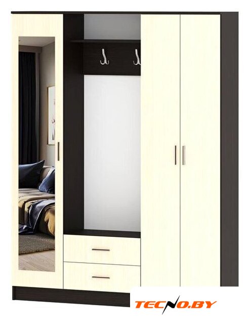 напольная, для прихожей, 5 полок, распашные дверцы, зеркало, каркас: ЛДСП, фасад: ЛДСП, 150x44x202.5 см