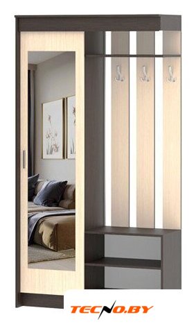 напольная, для прихожей, распашные дверцы, зеркало, каркас: ЛДСП, фасад: ЛДСП, 135x33x199 см