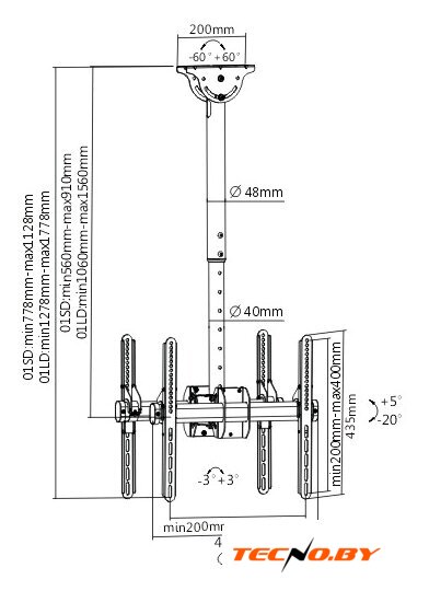 потолочный кронштейн для ЖК-телевизора 26-65", наклон 25°, поворот 180°, цвет черный