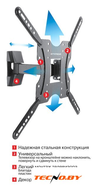 настенный кронштейн для ЖК-телевизора 13-55", наклон 10°, поворот 180°, цвет черный