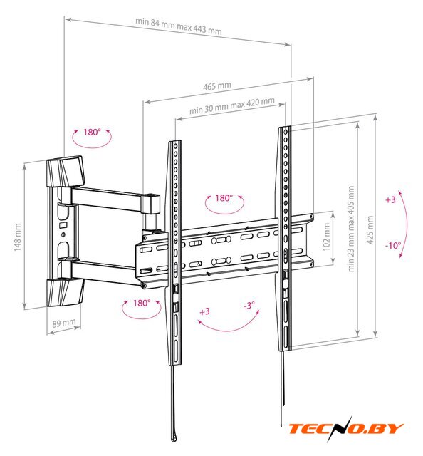 | Расстояние от стены (потолка) | 84 — 443 мм |