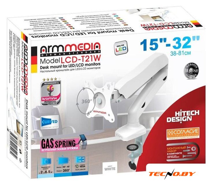 настенный кронштейн для ЖК-монитора 32-65", наклон 10°, поворот 160°, цвет черный
