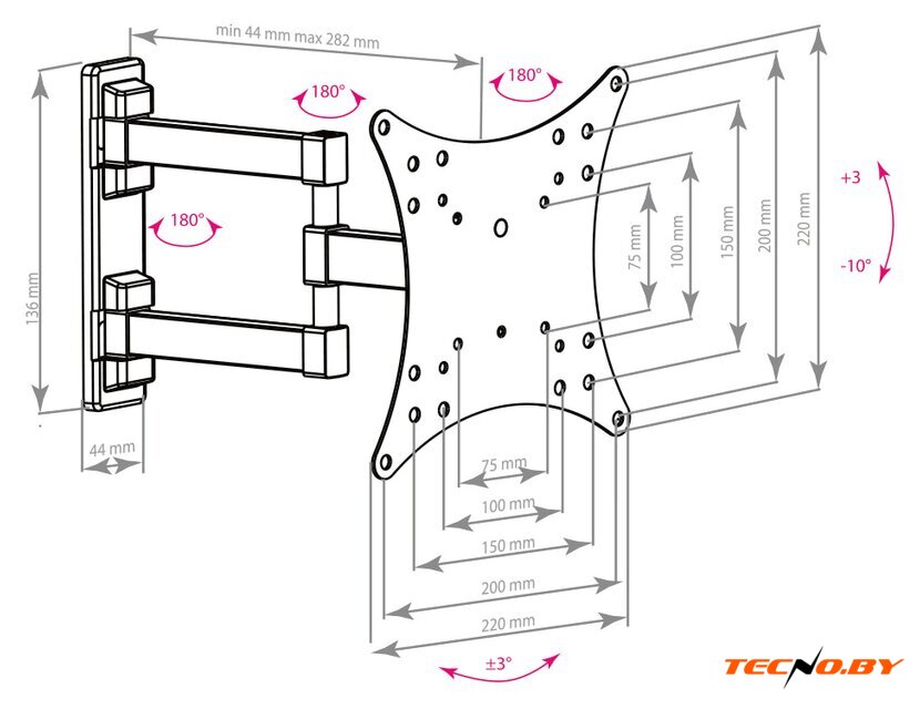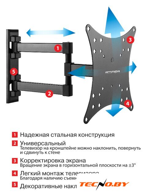 настенный кронштейн для ЖК-телевизора 13-55", наклон 10°, поворот 180°, цвет черный