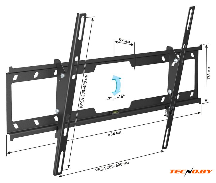 настенный кронштейн для ЖК-телевизора 15-55", наклон 12°, поворот 90°, цвет черный