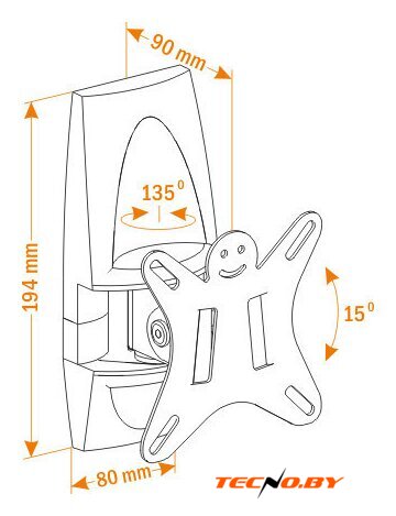 для ЖК-телевизоров, 13-42", настенный, встроенный уровень, наклон 8°, цвет черный