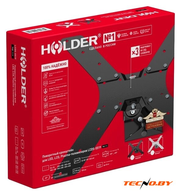 настенный кронштейн для ЖК-телевизора 22-55", наклон 12°, поворот 180°, цвет черный
