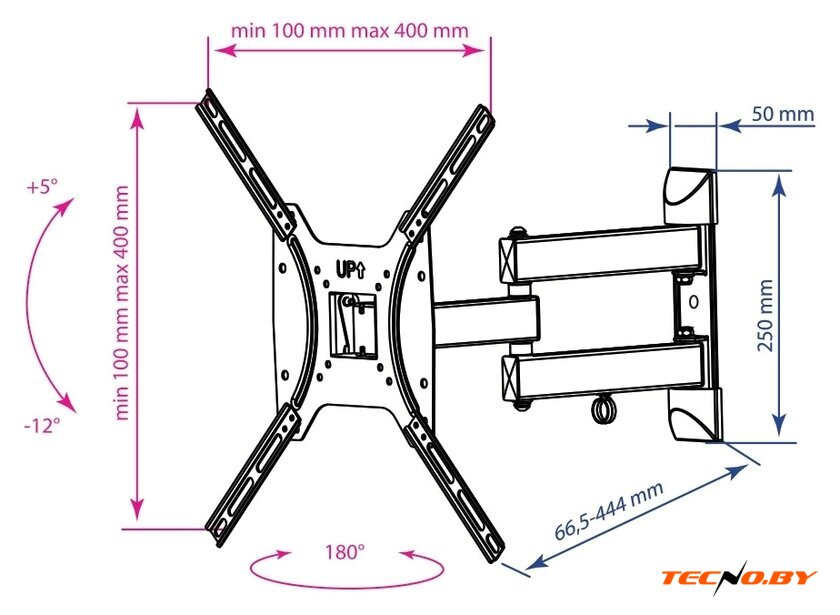 | Расстояние от стены (потолка) | 66.5 — 444 мм |